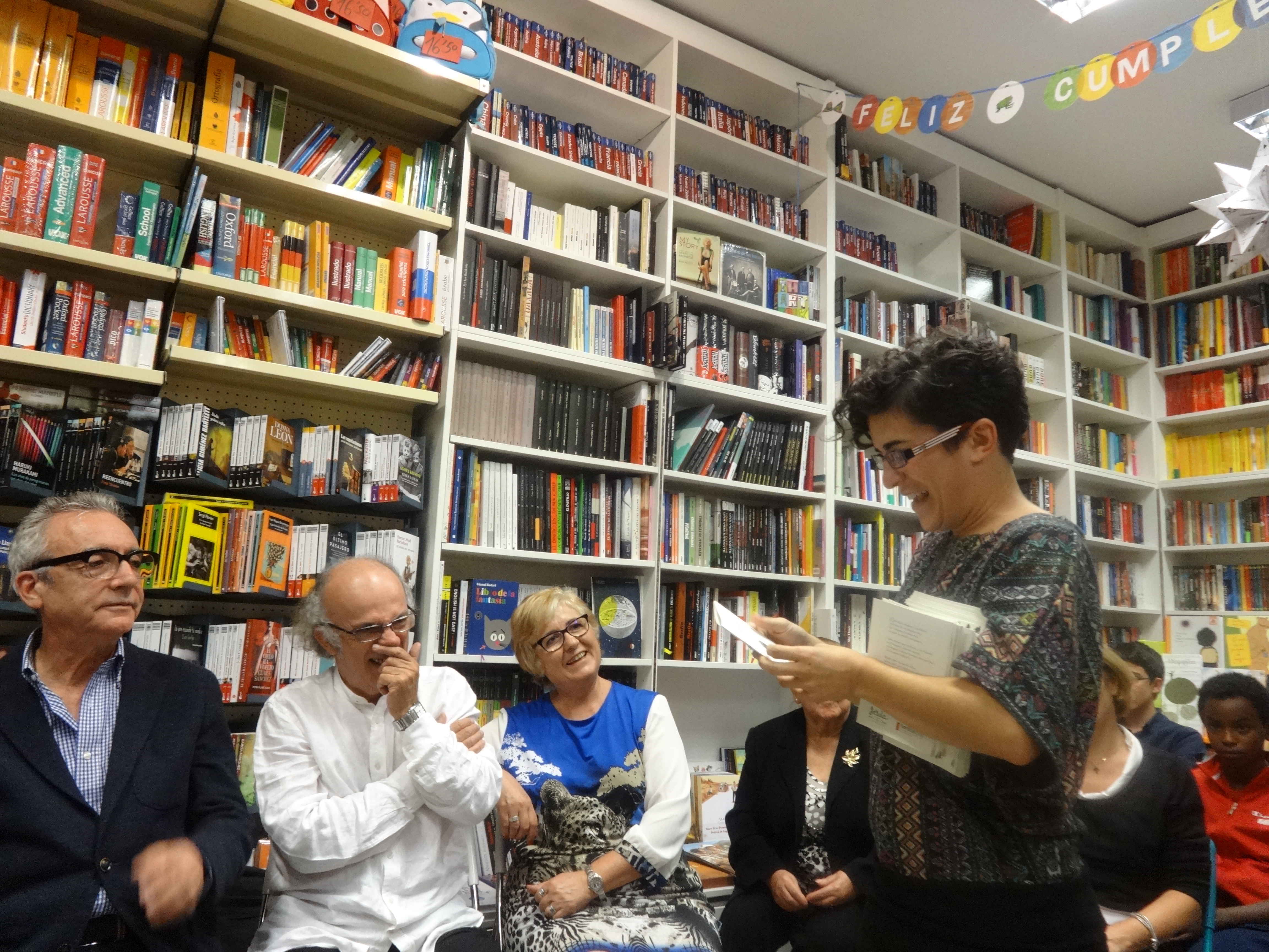 El cumpleaños de Jarcha se celebró allí en la librería y allí estaba Epifanía en la Luna para homenajear a Fernando Valverde (Nani) y Maribel, junto con un gran número de personas: lectores, editores y libreros.
